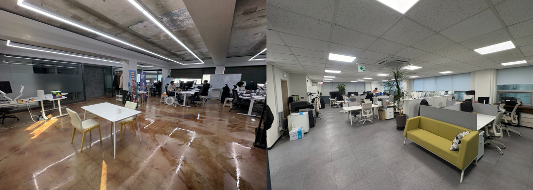 내부 컨디션 역시 상당히 깔끔한 상태였습니다. 이전 임차인이 사용 후 원상복구를 깔끔하게 마무리한 상태라 별도의 철거 작업이나 큰 공사 없이 바로 사용할 수 있는 수준이었습니다. 불필요한 공사 비용이나 시간 부담 없이 바로 세팅이 가능한 점은 단기 임차를 고려하는 기업에게 특히 중요한 요소입니다.